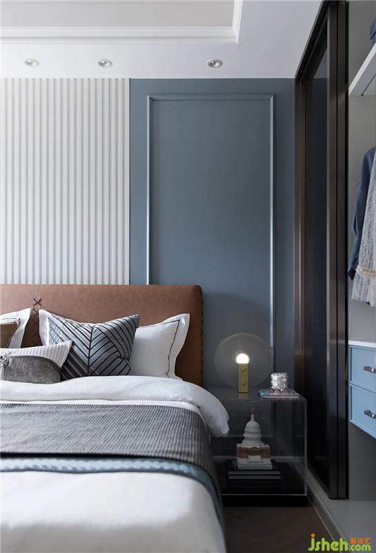 主臥的裝飾面沿用法式經(jīng)典元素,倍顯法式調(diào)性:沉穩(wěn)、大氣、精致,加上具有設(shè)計(jì)感的邊幾,軟裝與硬裝相呼應(yīng),在一定程度上為空間潤(rùn)色不少。