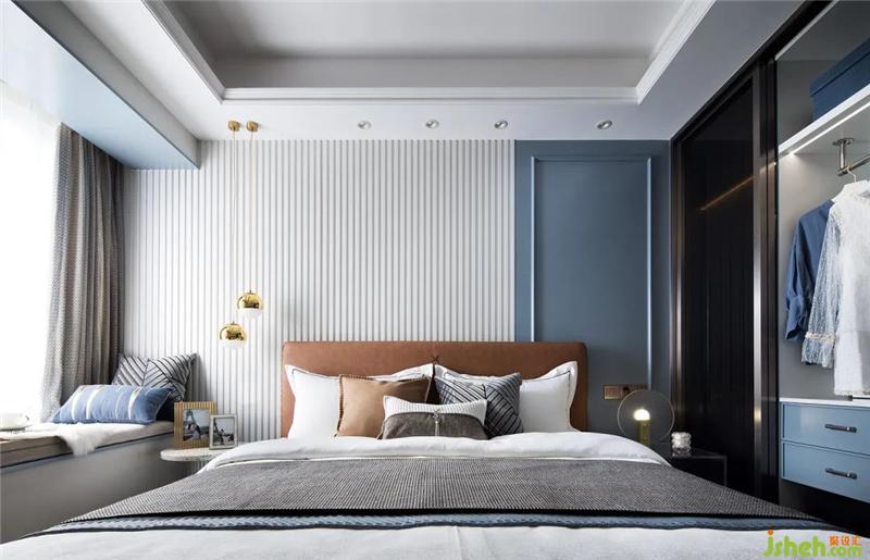 兒童房則與之沉穩(wěn)的調(diào)性相反,大膽地用藍(lán)色與粉色區(qū)分孩童空間,大面積的主墻紙簡(jiǎn)潔易懂得把孩童的喜好表達(dá)清楚,使空間躍動(dòng)又富有設(shè)計(jì)感。在兒童玩樂區(qū)域上也花了不少心思,男孩的積木墻與女孩的泡泡池,既保障了游戲的安全性也充實(shí)了空間,使它保持溫馨、跳躍。