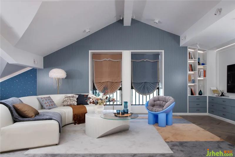 ▌隨即我們的視線來(lái)到二層,一眼看去,室內(nèi)從平面功能布局上已打破常規(guī),大膽地用大面積劃出了休閑廳、健身區(qū)與陽(yáng)臺(tái),再以清晰明亮的橙藍(lán)色提亮空間,結(jié)合開(kāi)闊的外景與頭頂?shù)奶齑埃麄€(gè)空間無(wú)比大氣,使人眼前一亮,豁然開(kāi)朗。