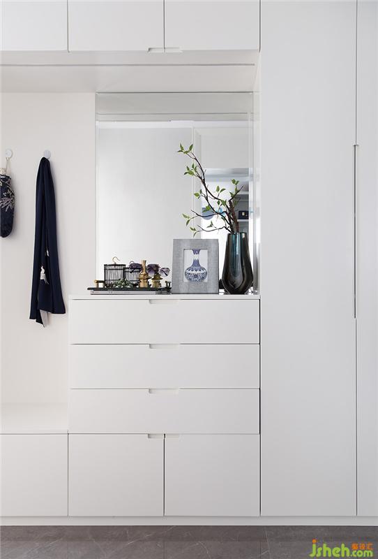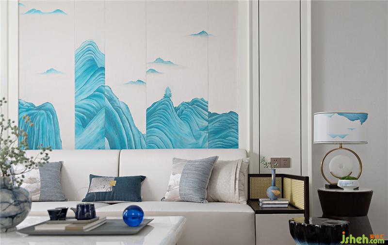 青花瓷始于唐,到了元代工藝純熟。元青花一改歷朝瓷器含蓄內斂之風,其形色大氣,氣勢雄渾,一舉奪下霸主地位。韋美設計師以大氣的青花山水畫展開空間畫卷,客廳家具選型在硬朗與舒適之間或張或馳,青花藍在大面積留白間穿插暈染,描繪出青花瓷的獨有魅力。