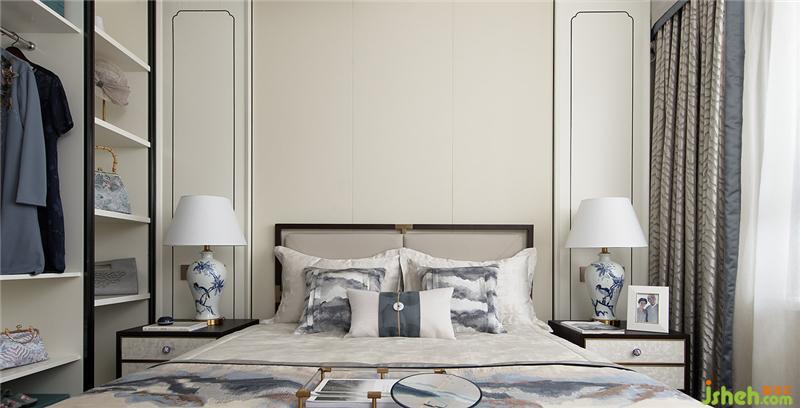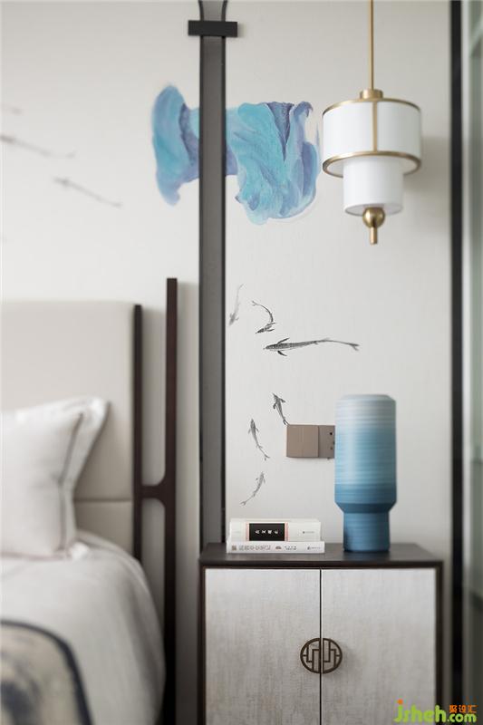 如果說元青花是雄渾大氣,那么明代永宣青花就是清雅樸素,超凡脫俗。主臥設(shè)計上,設(shè)計師融入明代永宣青花的特點,屏風錯落的散暈斑點有如水墨畫的墨暈,淡淡暈染出超然之境。雅致簡潔的家具在有序的坐落間有水墨青花散落開來,沁染心神。