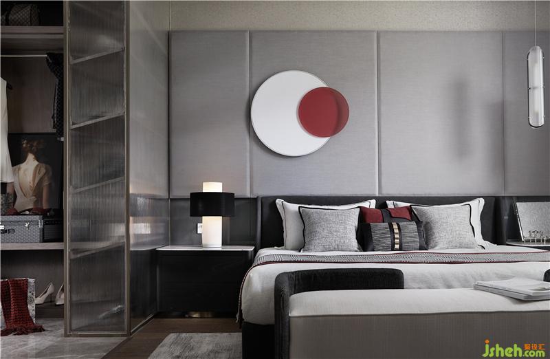 主臥延展的開間使用穩(wěn)重淡雅的灰調(diào),沒有夸張與炫目,而是平淡、溫馨,細膩地表達出對生活品質(zhì)的追求。這是一個臥室該有的舒適。即使處于閱讀角的一隅,亦關乎藝術、傳統(tǒng)大漆器具與現(xiàn)代藝術家郭天天的作品《朱園》相糅合,成為素雅空間的一抹點睛之筆。