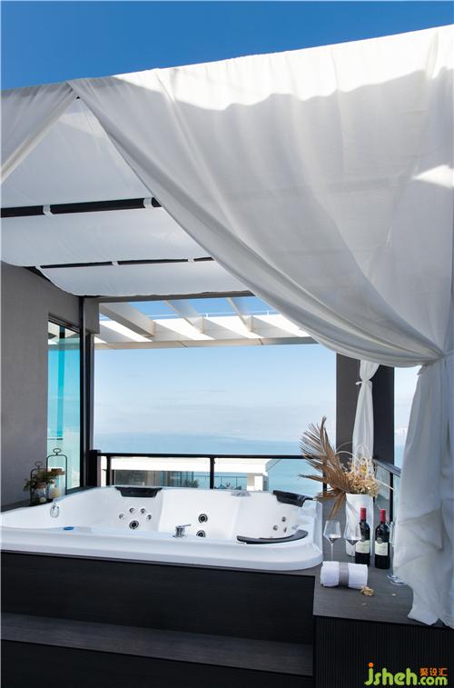 風(fēng)吹簾動,露臺上遠(yuǎn)眺大海,汲取清咸海風(fēng),攜卷著日落時分陽光的余溫,感受時間的游走,引發(fā)人對生活的無限遐想并期盼。