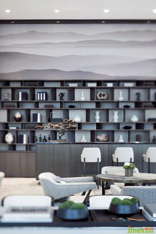 洽談區(qū)整體呈開放式的空間布局,卻又具有各自獨(dú)立區(qū)域,室內(nèi)設(shè)計(jì)師保留現(xiàn)代設(shè)計(jì)感,將濃郁的東方風(fēng)韻潛移默化地融入設(shè)計(jì)之中,加以落地玻璃的借景手法,開闊平坦的絕佳視野,一石,一樹,一紗,虛實(shí)寫意,可謂:“不知城市有山林,謝公丘壑應(yīng)無(wú)負(fù)”。