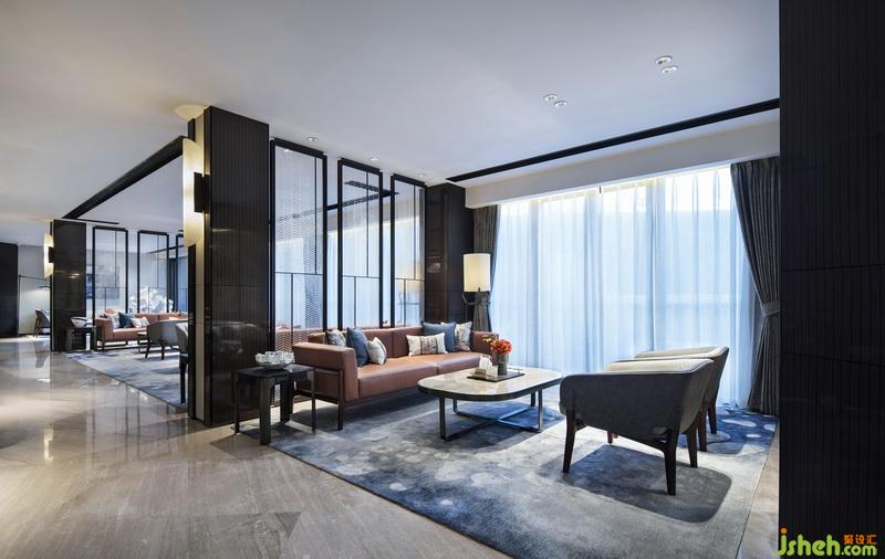 洽談區(qū)設(shè)有獨(dú)立區(qū)間和吧臺,室內(nèi)設(shè)計師以色調(diào)沉穩(wěn)的不銹鋼和光面直紋樹脂板材質(zhì)的藝術(shù)屏風(fēng)為分隔,營造出尊貴私密的商談氛圍。在隔與不隔間,引入自然景觀,模糊了界限,開闊了視野。