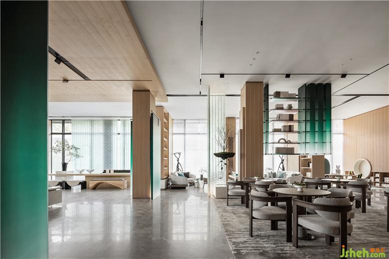 售樓處設(shè)計以來訪者之姿去思考生活,基于“一半書香,一半茶韻”為出發(fā)點,在原木飾面的氛圍營造下,呈現(xiàn)“竹林深處一杯茶,萬卷詩書腹中藏”,滌蕩心頭的陳雜過往,更有力量對抗都市的煩擾。