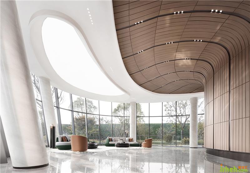 設計試圖通過對自然形態(tài)重新拆解、抽象和再定義,在光的相遇,云的漫不經心,水的靈動,樹的溫潤,將室內室外的邊界打破,建造人居生活的詩與遠方。