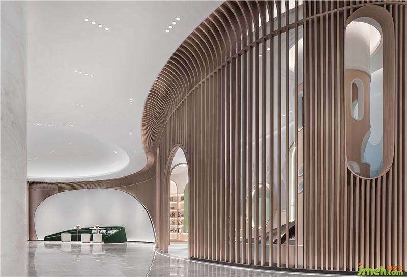 素雅簡潔的線條,仿佛處于流淌的光影下,讓人保持一種更加弛和平靜的狀態(tài)廣州售樓處設計。