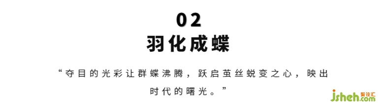 在解構(gòu)的空間中,適宜的墻體鏤空處理,安放如蠶蛹般的霞光溢彩輝映半空,似乎靜默一場(chǎng)新生,展現(xiàn)蝴蝶以破繭而出的力量。
