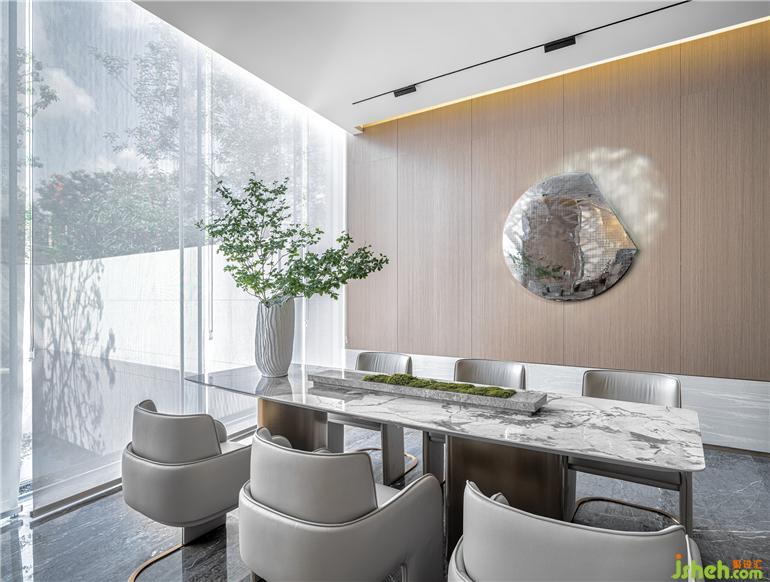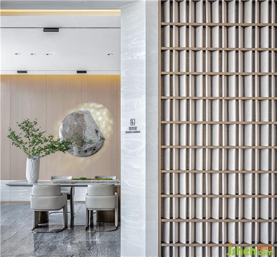 以熒熒的豎狀星光作為點(diǎn)睛之筆,在木色的環(huán)抱中置入特殊工藝的藝術(shù)陳設(shè),恰到好處地表露出未來(lái)社交的內(nèi)蘊(yùn)與美學(xué)風(fēng)度。