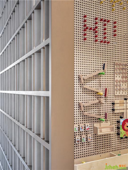 光影塑造的綠植與幾何形態(tài),建立起一片獨(dú)特且自然的兒童世界。童話的元素恰如其分地呈現(xiàn),反復(fù)運(yùn)用自然柔和色彩,在活躍的空間氛圍下,等著駐足的靈蝶,讓有趣的事物都自然而然地發(fā)生。