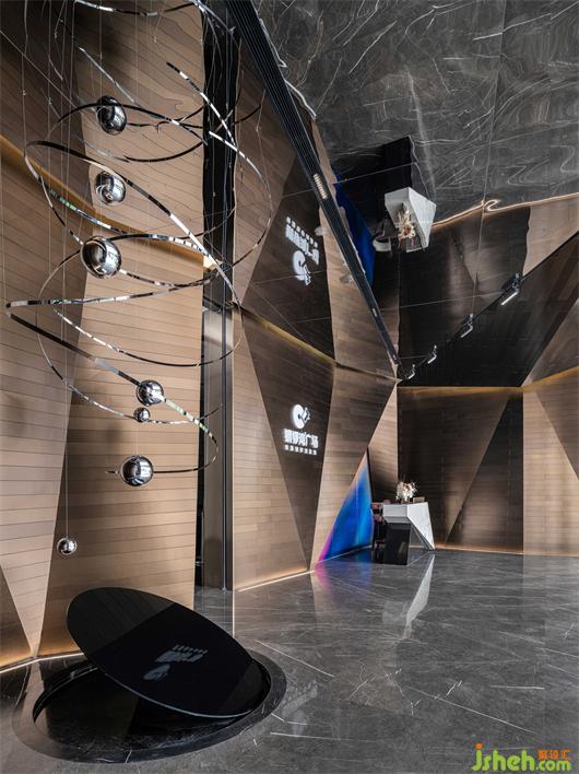 山脈與礦石共有的切割折線元素,幻化為空間的幾何語言,配合空間游移的功能轉(zhuǎn)換,售樓處設(shè)計形成傳承性與社交性兼容的展示空間。