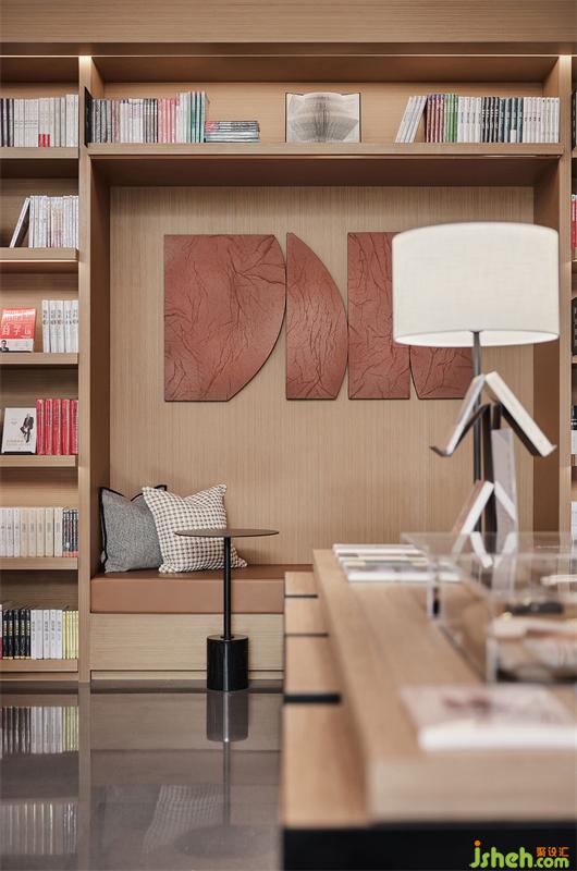 由“紙張”的概念衍生到“書(shū)本”,在后場(chǎng)空間形成新零售書(shū)店的設(shè)計(jì)思路,為訪者提供一種新型的共享型生活方式。銷售中心設(shè)計(jì)閱讀環(huán)境極大融入藝術(shù)人文主題,臨摹一位紙藝人的書(shū)吧為場(chǎng)景概念。以收藏圖書(shū)上萬(wàn)余冊(cè),涵蓋文學(xué)藝術(shù)、影視攝影、生活休閑、和少兒讀物等品類,并在書(shū)架的各處設(shè)有休閑桌椅,讓業(yè)主慢慢行走在書(shū)的世界中,給自己多一些恬靜的時(shí)光。書(shū)籍、電影和藝術(shù)品等物件被看似隨性卻是有內(nèi)在聯(lián)系地?cái)[放在特定區(qū)域,以引起共鳴姿態(tài)滲透質(zhì)量生活的追求。