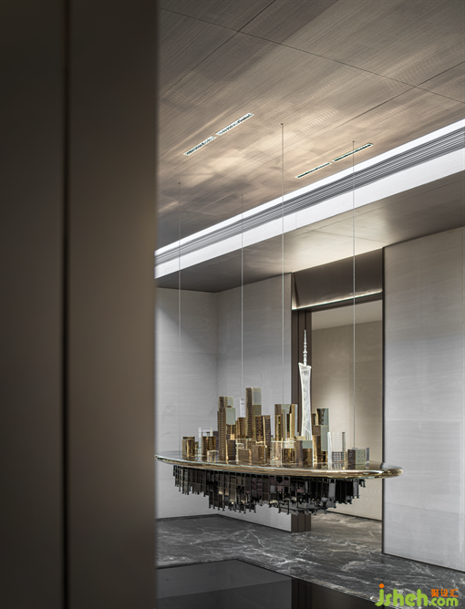 廣州城市倒影的藝術(shù)裝置,把當(dāng)代建筑地標與經(jīng)典騎樓作對照,售樓部設(shè)計在探索藝術(shù)、自然和建筑的相互作用下,暗喻著在新舊更迭中,城市宛如一個有機生命體不斷向前發(fā)展。