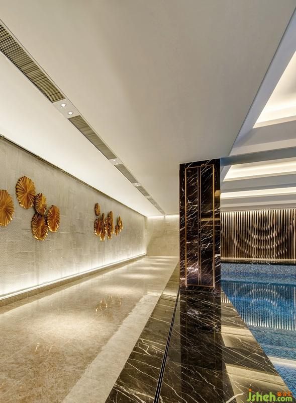 室內(nèi)外廊道的設(shè)計靈感來源于蘇式園林的回廊,與之不同的是,設(shè)計師融入后現(xiàn)代城市雕塑設(shè)計之風(fēng)采,嚴(yán)謹(jǐn)?shù)臉?gòu)圖,寫實的表意,中式意象的洗練,定性了整個建筑一種嶄新的審美風(fēng)格。設(shè)計公司