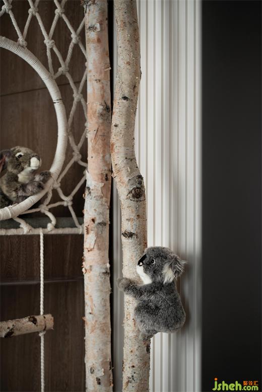 用地毯模擬森林的植被,而小羊咩咩、考拉懶懶成為空間的守護(hù)者,樣板房設(shè)計師將自然搬進(jìn)兒童房,為小朋友編織夢想。