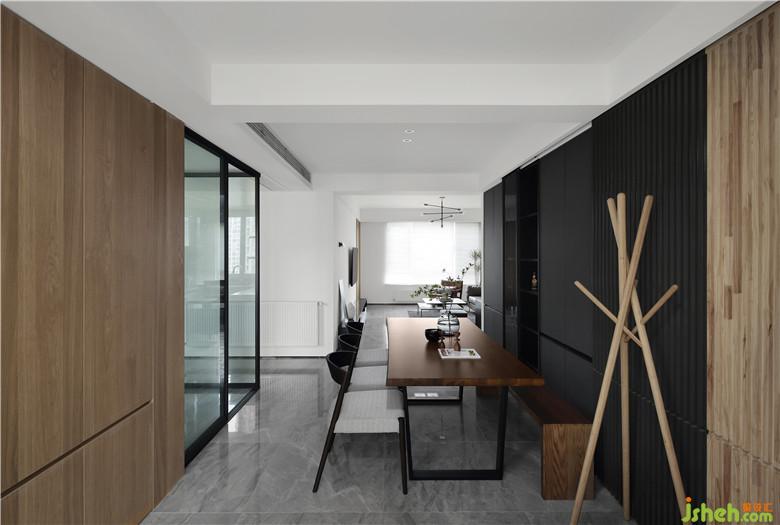 黑白灰和原木色,無論身處哪個位置,都擁有不同的透光度,氛圍也隨著光線發(fā)生著妙不可言的改變。啞光柜體、玻璃移門、拼接木飾面,讓現(xiàn)代感十足的設(shè)計線條與比例,營造層次豐富、設(shè)計語言多彩的立體餐廳空間。