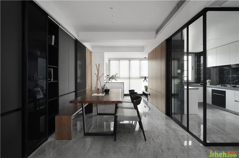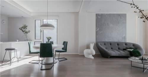 室內(nèi)設(shè)計師利用玄關(guān)、廚房、客廳不同方位和角度的自然光線變化來調(diào)整餐廳區(qū)域的景深,形成一種連續(xù)、重疊的效果。不同的空間交互延伸,構(gòu)筑餐廳大氣敞朗的人文意象。