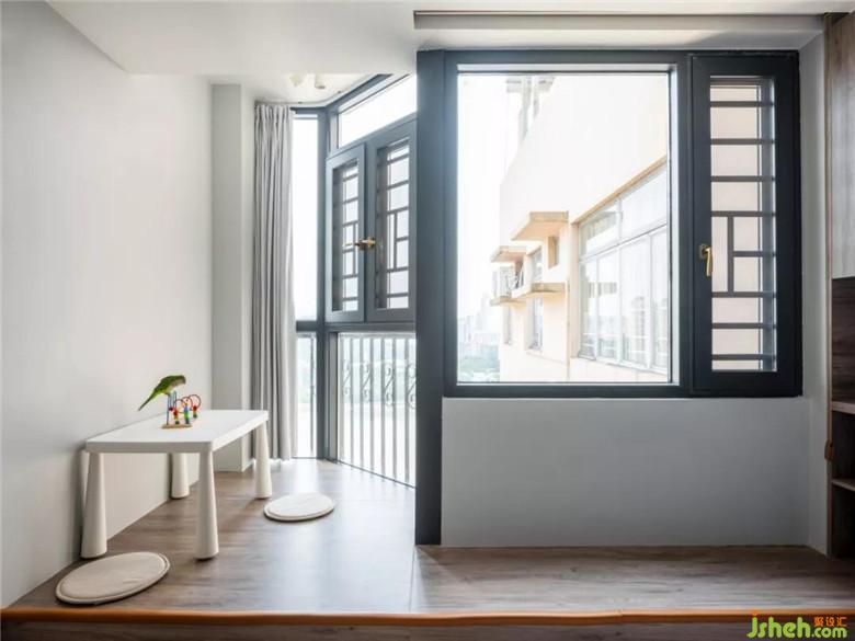 客廳的一角是小孩玩樂的天地,家里最多的就是業(yè)主小孩的玩具,設(shè)計(jì)師設(shè)計(jì)了一個(gè)2平方米的飄窗木地臺(tái),小小的角落,是一家三口嬉笑玩鬧的空間,快樂的親子時(shí)間在這里緩緩而過。