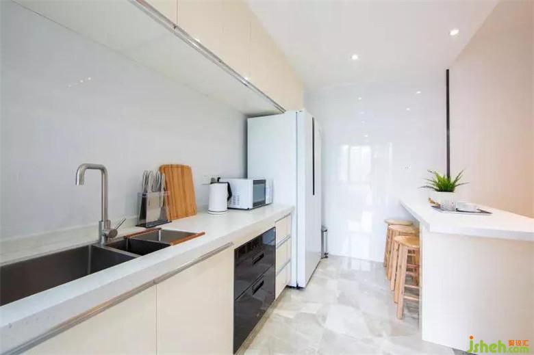 半開放式的廚房,打破了原有死板的功能分區(qū),讓客廳,廚房,餐廳串通,增強了三個功能空間生活場景的互動,生活動線的巧妙過渡連接,提高空間的利用率同時,讓房子更加通透