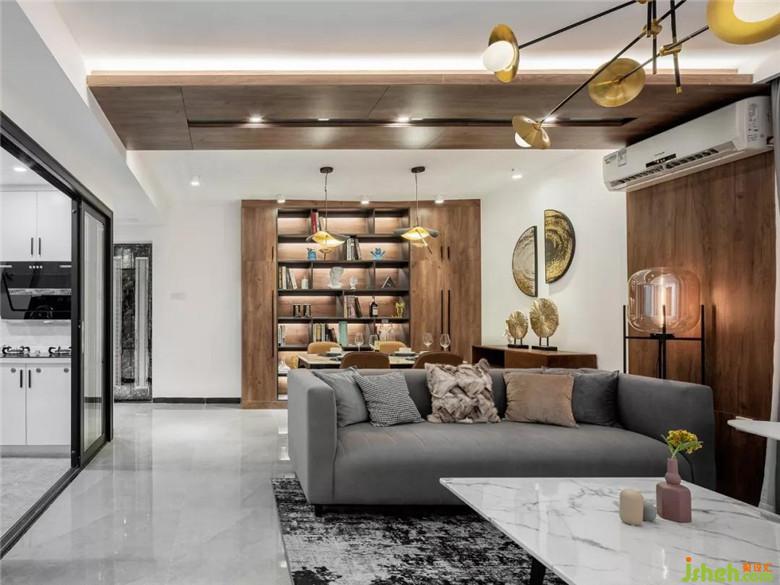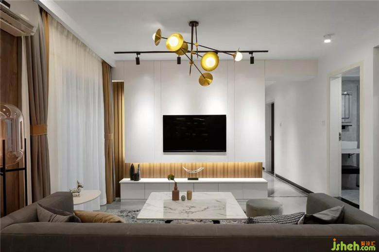 客廳改造后動線清晰,輕奢精致,設計師設計了一面落地窗,打通了和臥室的陽臺,增加客廳和臥室的光線,清爽的大理石紋理給客廳增加一縷清涼??蛷d做了半吊頂木質的設計,這樣一來客廳與餐廳的功能區(qū)域更加清晰,復古輕奢的吊燈,金屬質地提升了客廳的格調和氣質。