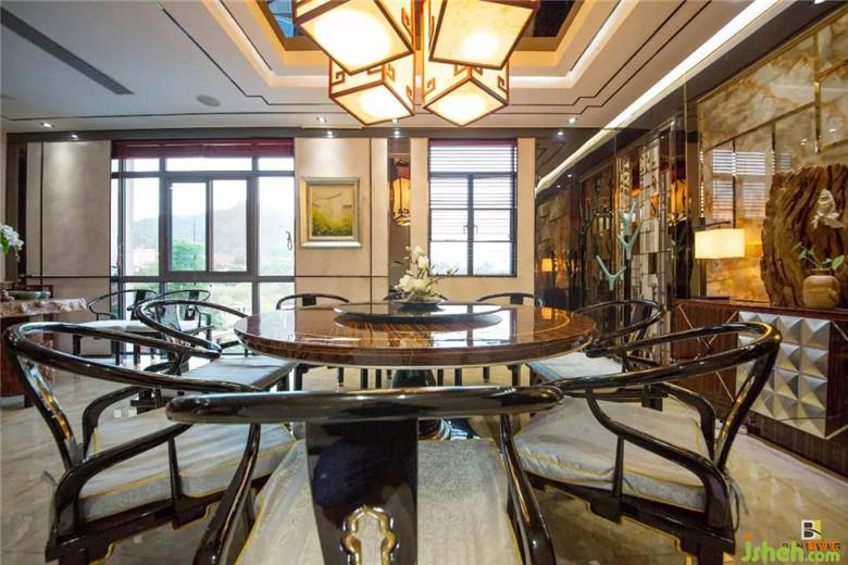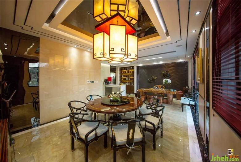 餐廳里懸垂而下的古色生香的吊燈,映出觥籌交錯(cuò)的倒影,透亮的大理石地面與頂上的黑鏡鋼相映成趣,似在推杯換盞中訴說著心情,耳畔也似傳來福壽雙鶴的祝語,守護(hù)著一家歡喜。