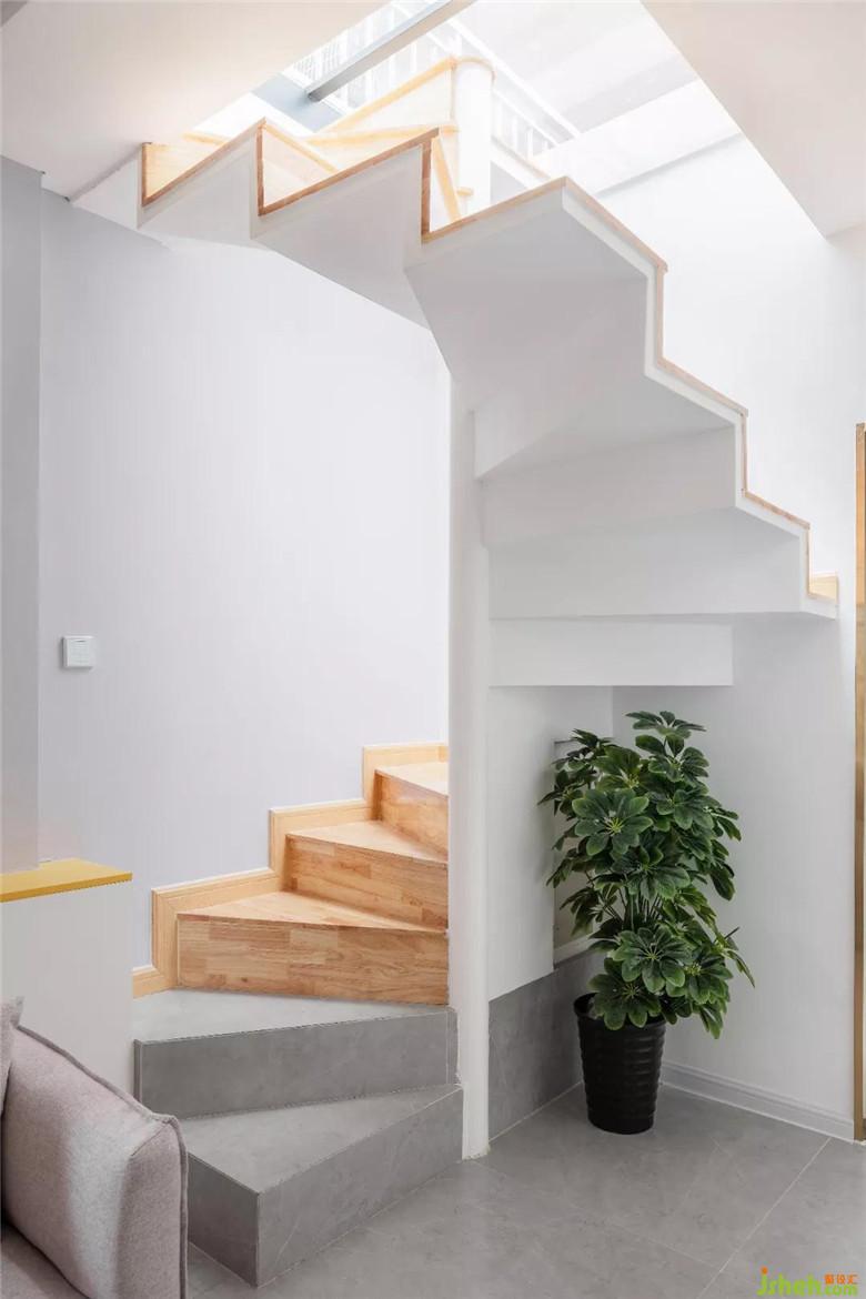 本次改造最具特色的是旋轉(zhuǎn)樓梯的設計,設計師擯棄了傳統(tǒng)樓梯設計方式,設計了一個連接天臺的旋轉(zhuǎn)樓梯,樓梯的頂部是一個天窗設計,光線的照拂就像沐浴在暖陽下,讓整個空間全天保持明亮,樓梯邊有一個開關(guān),是可以控制天窗的開關(guān)閉合,下雨天時可以關(guān)閉天窗,保持室內(nèi)干燥。