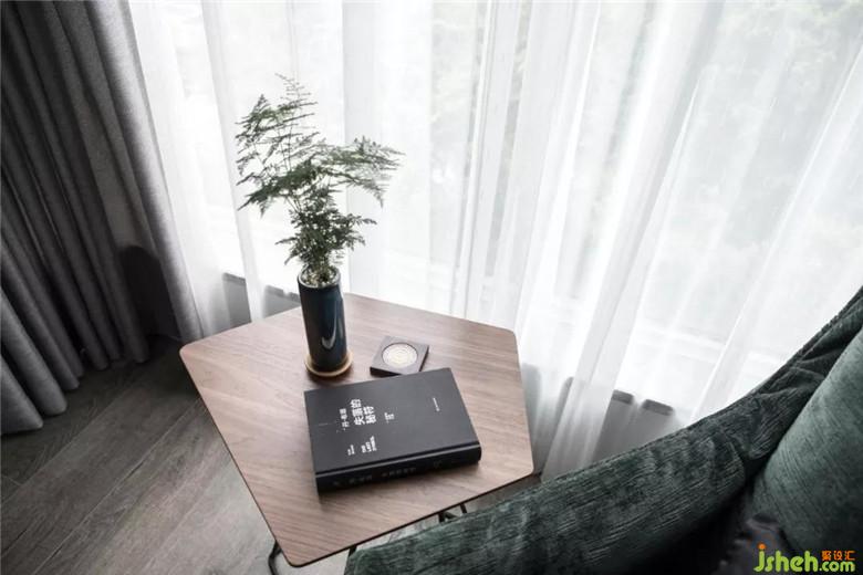 高雅自由的空間,充滿了唯美的想象,灰色加墨綠色的搭配,提升空間沉穩(wěn)度,黃銅色床頭燈不但跟墨綠色很搭,且增添了空間的復(fù)古氣息。原木色的床頭背景墻一方面保留了現(xiàn)代風(fēng)格的簡潔、自然,又增添了空間的層次感和溫潤靈動(dòng)的尺度感。