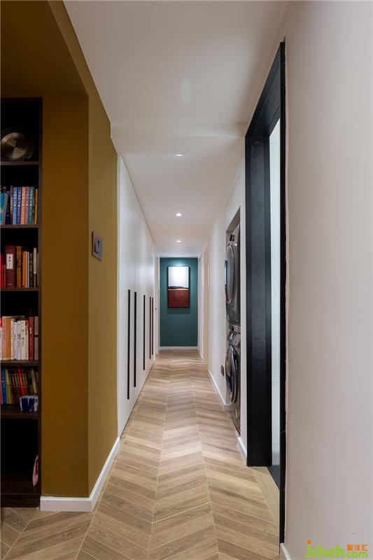 原始的走廊過(guò)寬,利用率低,將原入戶門封住后定制了一面儲(chǔ)物柜,收納功能超級(jí)強(qiáng)大。柜體內(nèi)部設(shè)置了活動(dòng)層板,需要的話,原先的入戶門還是可以使用的。
