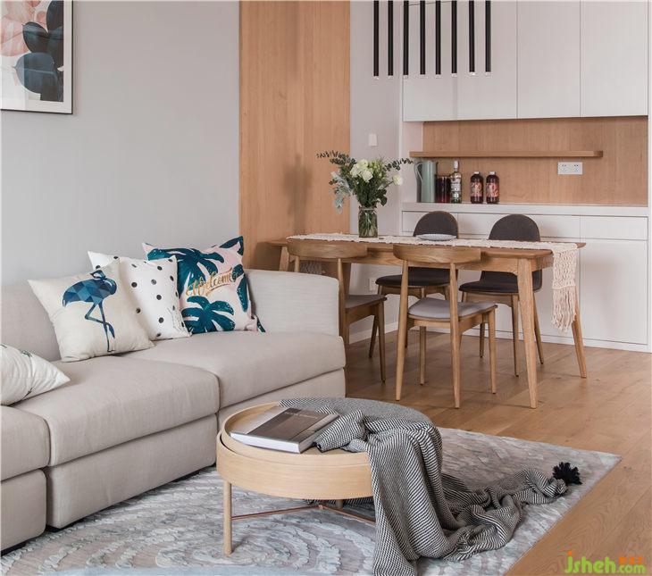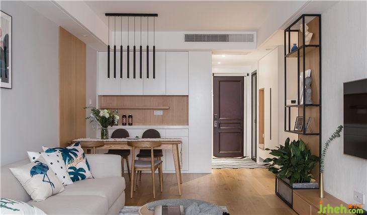 整體色彩上面以文藝白為基調(diào),搭配地面原木色的木紋磚,灰色布藝沙發(fā),整排的書架,白色在整個空間內(nèi)一點也不無聊,硬軟裝的結(jié)合,流露出簡約的美感。