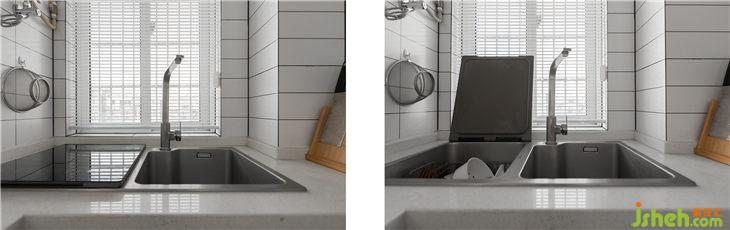 很難受的是廚衛(wèi)方面,進(jìn)入廁所要從廚房那邊進(jìn)入,且廚房的操作臺(tái)面好小。一個(gè)L型廚房除了一個(gè)水槽,一個(gè)油煙機(jī),一個(gè)冰箱的區(qū)域,沒了。而衛(wèi)生間比較奇葩的是浴室柜竟然在淋浴房。。。??上朊看蔚牟僮髟撚卸嗖环奖?。