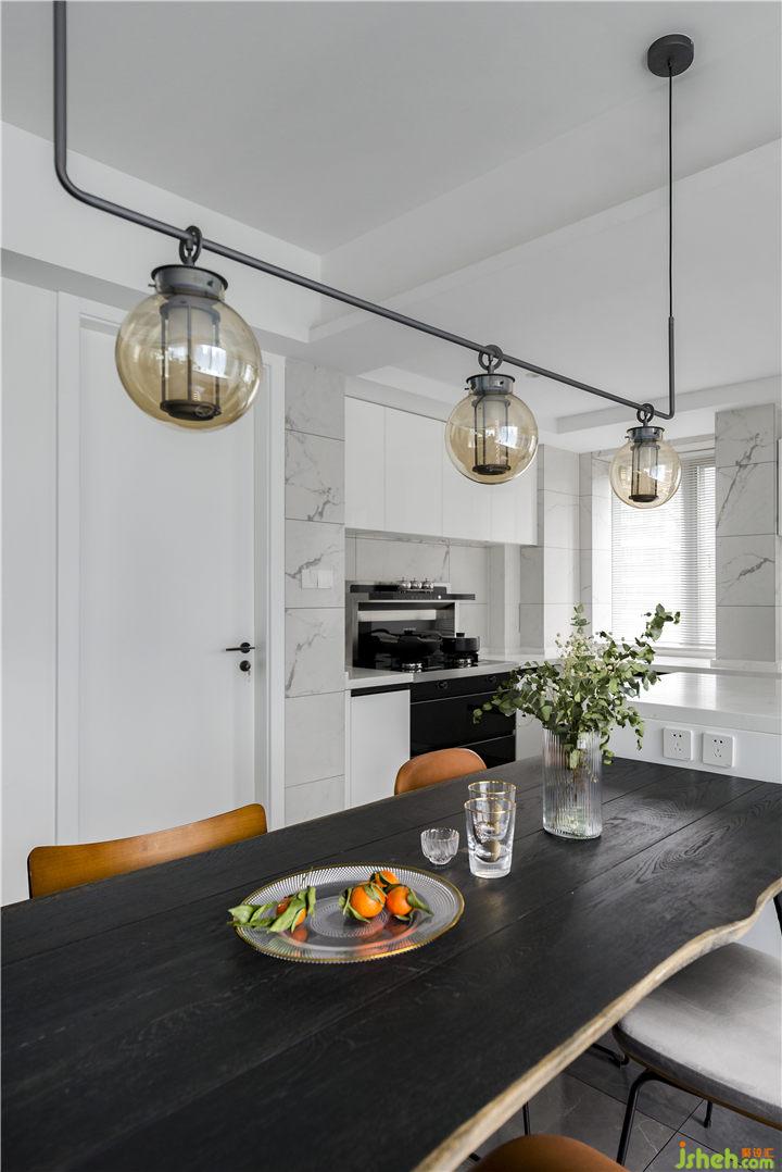 在窗戶下方設(shè)計(jì)一排矮柜,在不阻擋光線入戶的同時(shí)解決了屋主日常餐廳儲(chǔ)物需求。