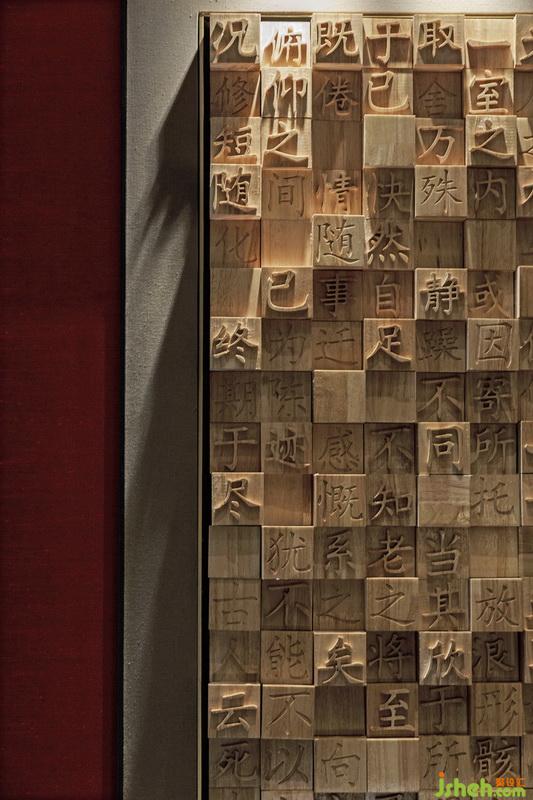 推開通透的鏤空金屬隔扇門,空間層層遞進(jìn),遠(yuǎn)處墻上活字木塊錯(cuò)落拼疊,桌案上透著墨香的宣紙與筆硯,空間充盈著平和暢達(dá)的氣息,無不使人賞心悅目。
