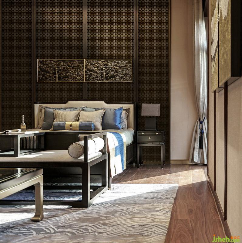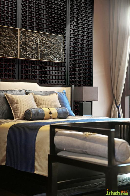 挑高的屋宇、兩側(cè)全明落地門窗的設(shè)計(jì),引入大量自然光線與氣韻。整齊光潔的屋梁,精致大氣的柜體,舊時(shí)中式床榻椅具,針腳細(xì)膩的絲質(zhì)床品,再現(xiàn)了舊時(shí)合院生活的典雅,使居住者于此,心中疏朗又宏大。