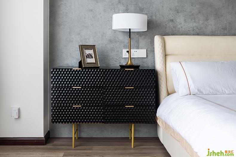 縱觀主臥,這個空間沒有多余的色彩,累贅的粉飾,白色、灰色唱主旋律,間或添一抹黑色。沒有綠植,也沒有掛畫,這些常用的裝飾點綴手法在這里隱盾,只用顏色的深與淺,濃與淡來展現(xiàn)另一番低調(diào)風(fēng)貌??臻g追求少即是多的原則。