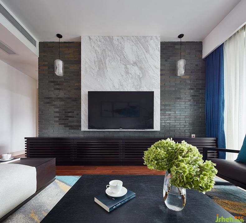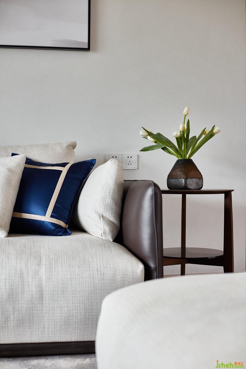 端莊雅致的客廳中,黑、白、灰、藍(lán)四大主色系奠定空間基調(diào),中式元素與現(xiàn)代材質(zhì)巧妙兼柔,對稱布局,形成一派現(xiàn)代中式的端莊豐華。