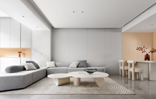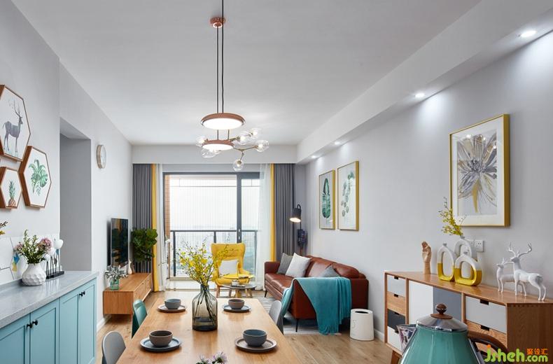 設計初期,室內(nèi)設計師就將這套房子的風格定義為清新北歐,以含蓄柔和的淺灰色作為空間打底色,綴以高飽和度的黃色、綠色與湖藍色,同時以溫潤的原木色柔和整體空間視覺感,打造出舒適大氣的暖心一宅。