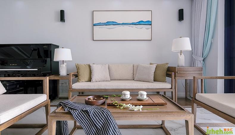 客廳演繹著明澈極簡的生活美學——簡單利落的木質(zhì)線條勾勒出空間骨架,釋義生活的黑白鋼琴、溫軟沙發(fā)、水墨掛畫與禪意三兩則落成空間肌理。