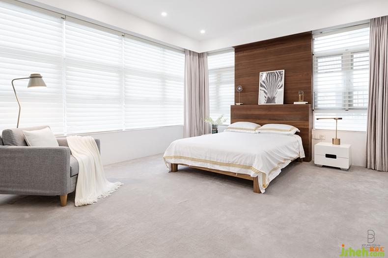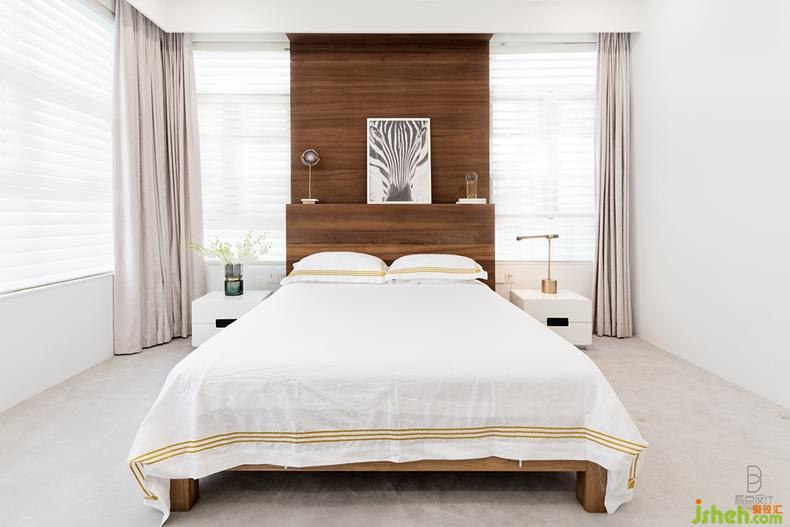 設(shè)計(jì)師采用對(duì)稱設(shè)計(jì),以木質(zhì)背景墻為中心,窗戶居于兩邊,別出心裁地最大化引入自然光線,層層的光影效果令空間更加豐富,散發(fā)舒服溫暖之光。