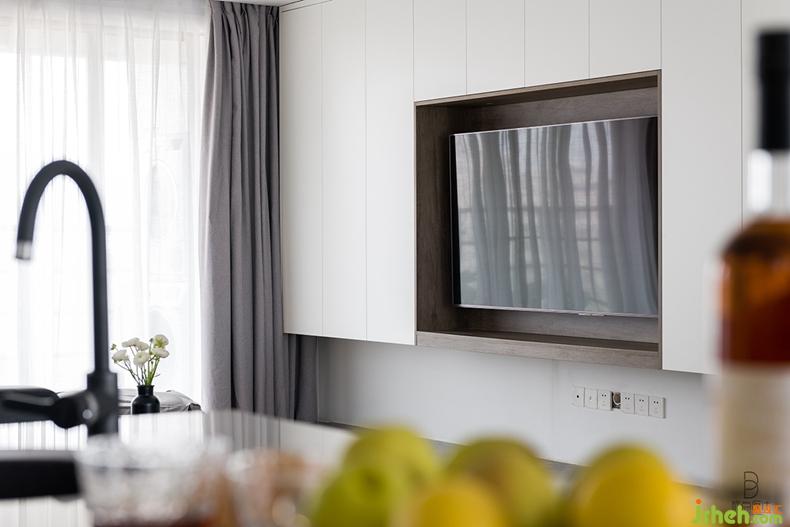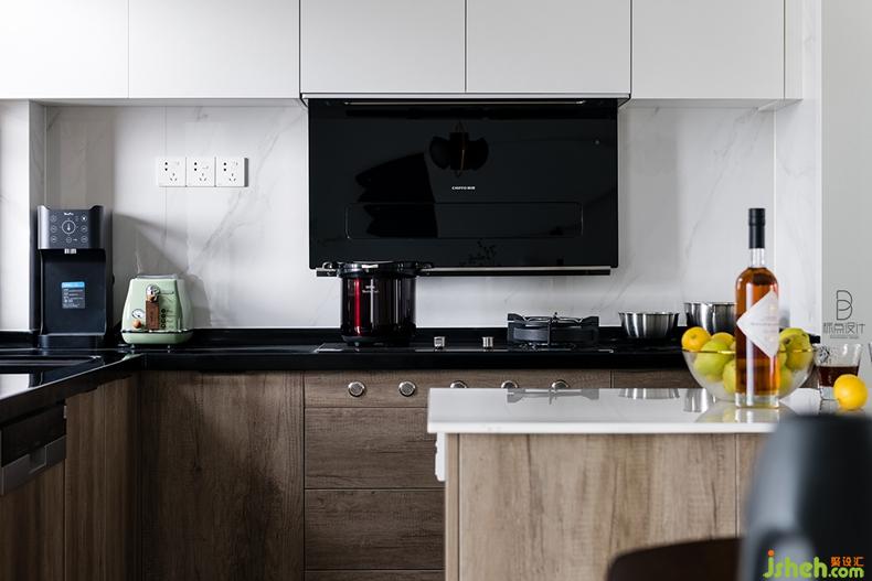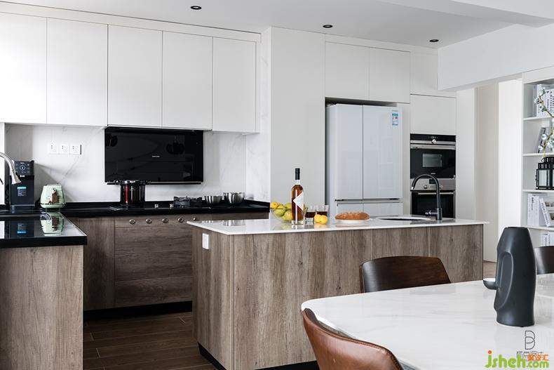 紋理清晰的木質(zhì)櫥柜和中島臺,讓開放式廚房充滿了自然的淳樸氣息,給人一種簡單舒服的感覺。