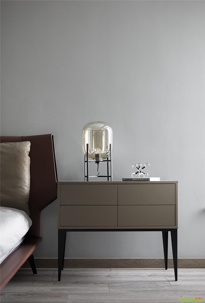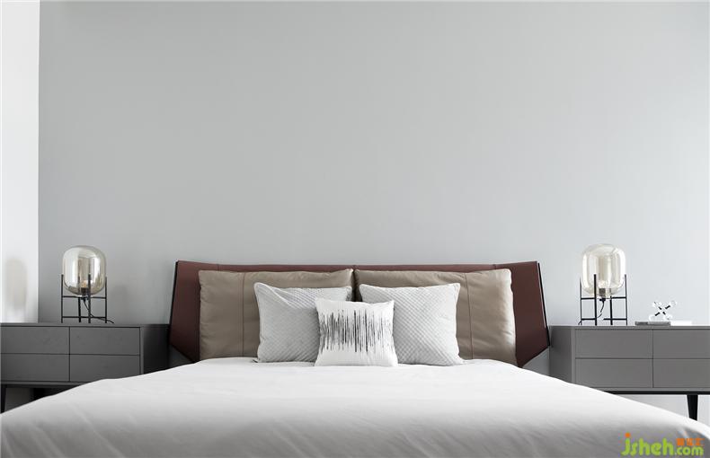 床頭墻面我們選擇了淺灰色與床尾衣柜顏色相呼應(yīng),