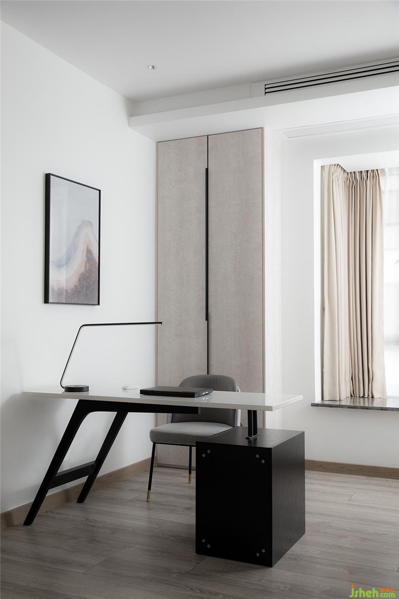 床尾是一個(gè)開(kāi)放式的學(xué)習(xí)空間,為了讓臥室空間感更好,所以這里沒(méi)有做隔斷。