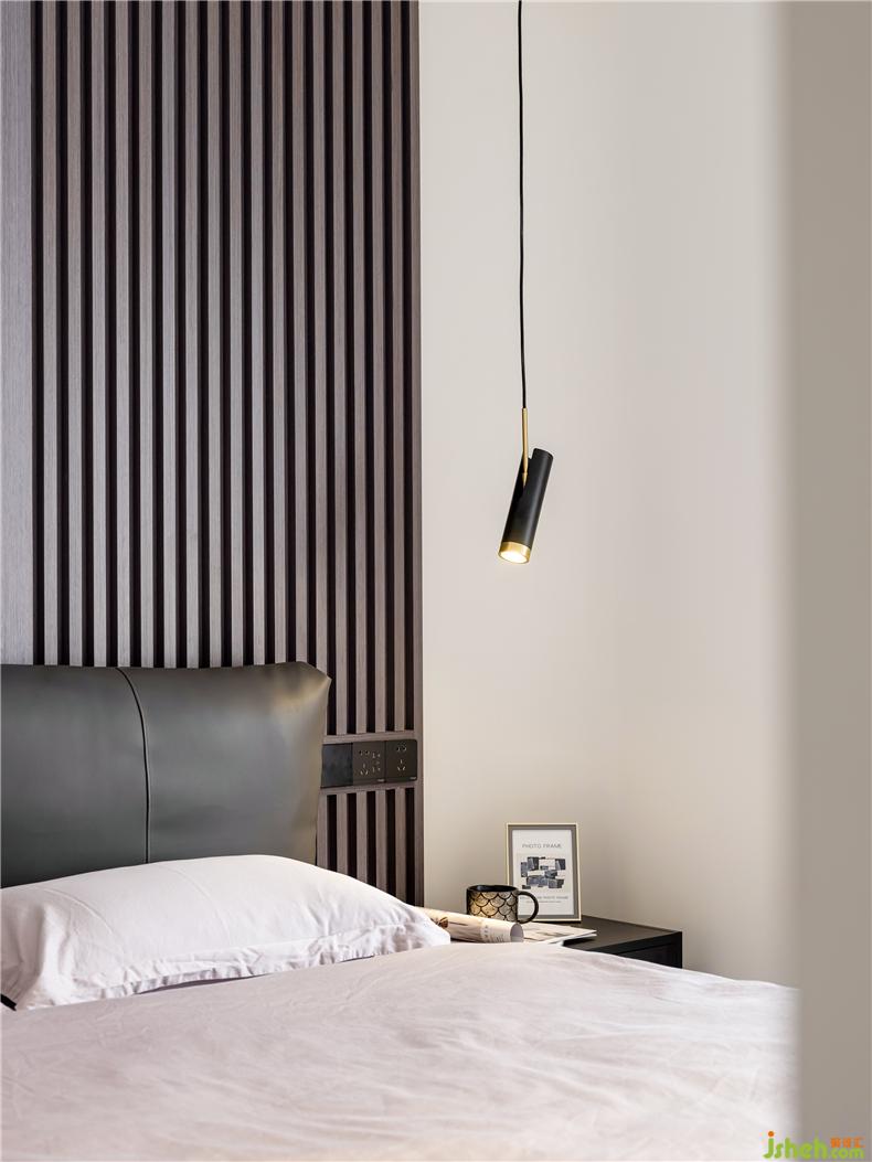 床邊的衣帽柜上方設(shè)計(jì)了暖色系照明