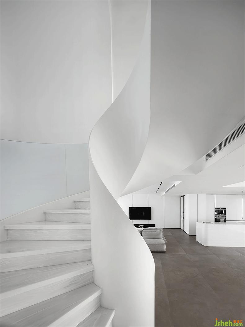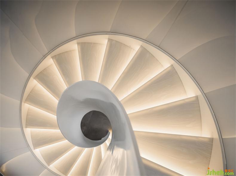 扶梯而上,流動的曲面,回應(yīng)無限的自由和遐想,極具雕塑感的設(shè)計,不僅解決了維度的局限性,室內(nèi)設(shè)計師也鏈接著建筑美學(xué)的詩意和生活,隨著距離和時間的改變,光影也隨之變幻,然后,遇見……