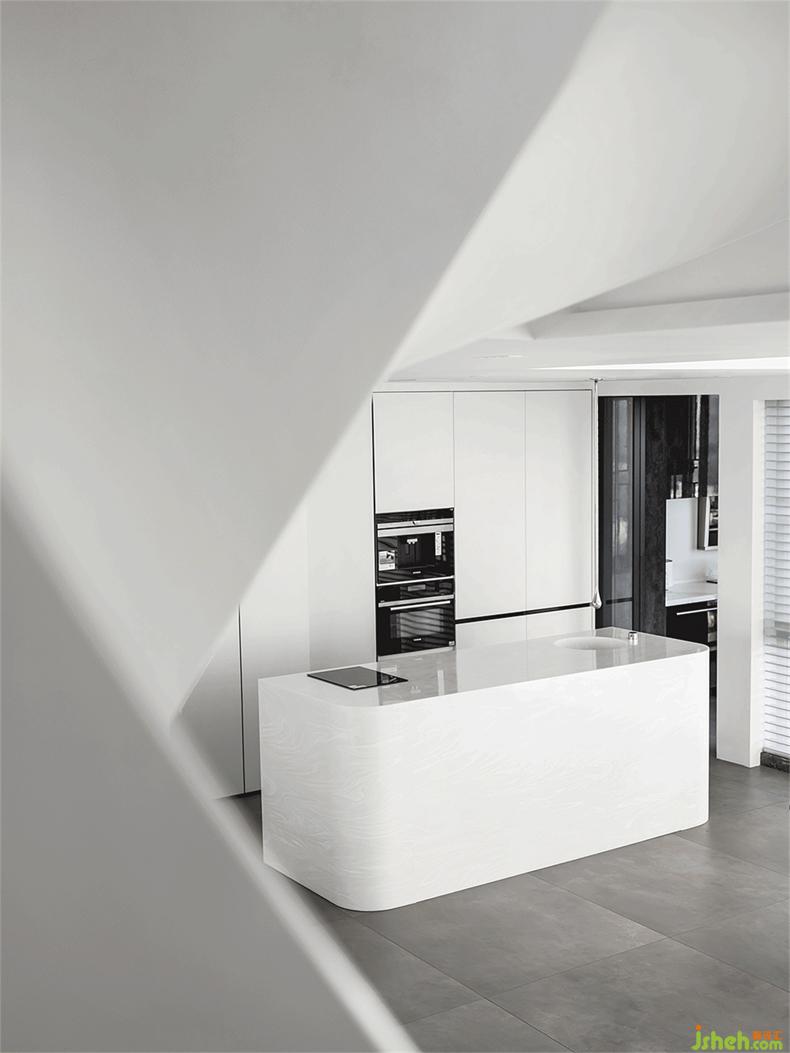 The repetition of white in form does not increase visual fatigue either, and the technique of deconstruction extends the space visually, coupled with light and transparent texture, creating borderless dimensions.