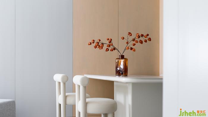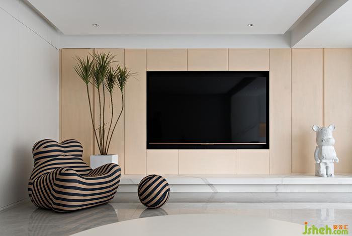 電視背景墻一整面的暗藏收納柜,大大滿足了收納需求。深圳家裝設(shè)計原木色的柜門與餐廳呼應(yīng),讓空間溫馨而舒適。