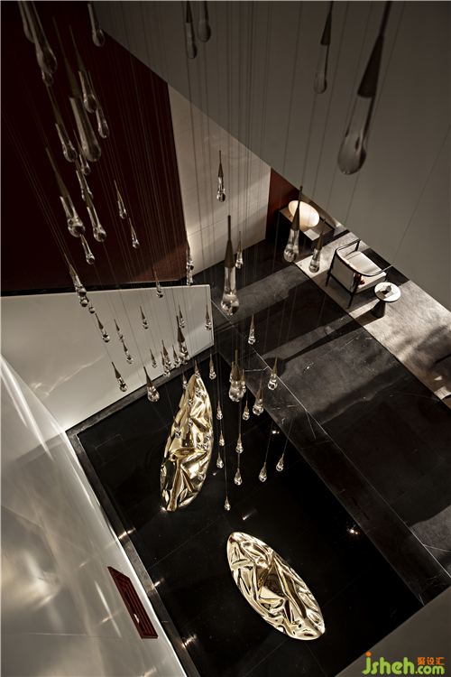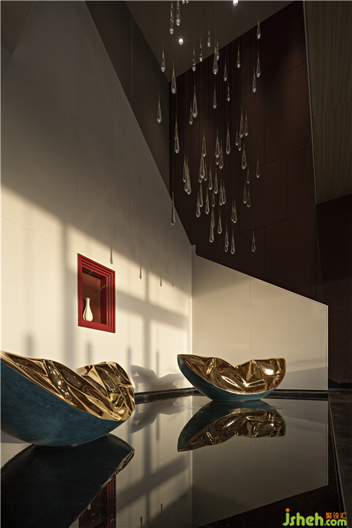 The chandelier in the sand table area is like the winding water of the Yellow River, which integrates nature and culture into the space. Tradition and contemporary combine here, which makes a better life within reach.