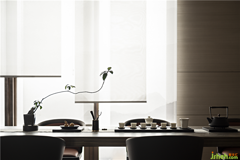 The project introduces elements of Yellow River, Mount Tai, bamboo, camellia and other elements with rhyme of ink and bamboo as well as silent pumice stone. In the light of bronze lamp and nature, water and the shadow of the moon wander together.