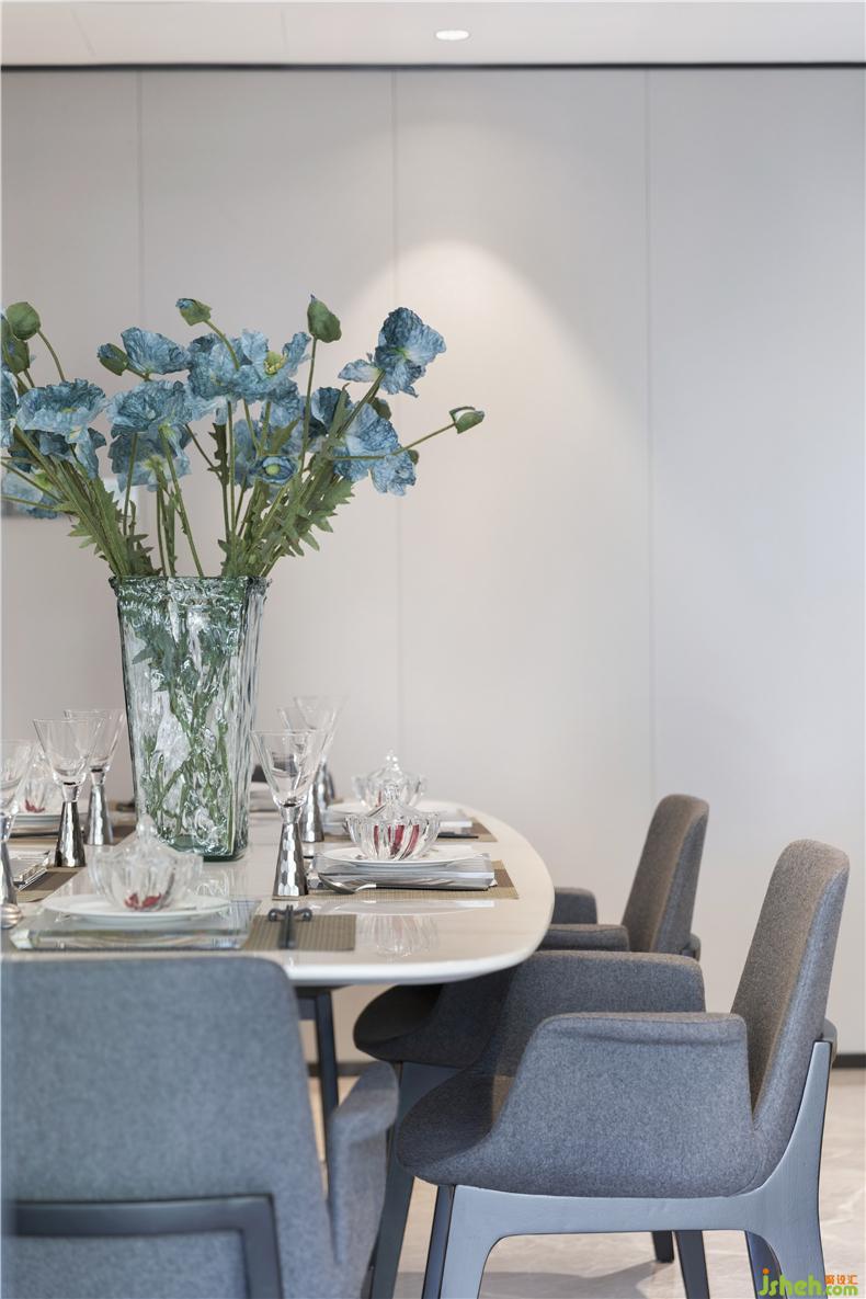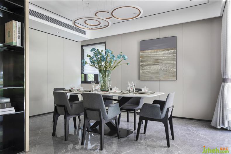 餐廳的設(shè)計(jì)剛好符合一個(gè)幸福的五口之家,別墅裝飾餐桌上淡藍(lán)色花束讓人用餐的同時(shí)能感受到自然地芬芳,開啟一天美好的生活。全屋智能化人性化燈光設(shè)計(jì),讓人隨時(shí)隨地都能體會(huì)到科技帶給生活的便利。