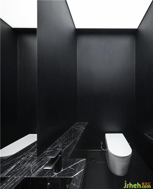 公共衛(wèi)浴的區(qū)域,利用黑白兩色視覺(jué)上將空間一分為二,增大視覺(jué)寬度。SPA設(shè)計(jì)定制LOGO全身鏡方便顧客自拍的同時(shí)實(shí)現(xiàn)品牌傳播。所有潔具均采用德國(guó)高端品牌,在每個(gè)細(xì)節(jié)給顧客提供最好的體驗(yàn)。